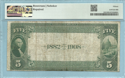 $5 National Currency 1882-DB - Ch#4839 - 1st NB, Arcanum, OH - PMG 15