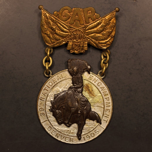 GAR Delegate Badge Denver 1905 w/ Rodeo Bucking Bull - By Whitehead & Hoge |