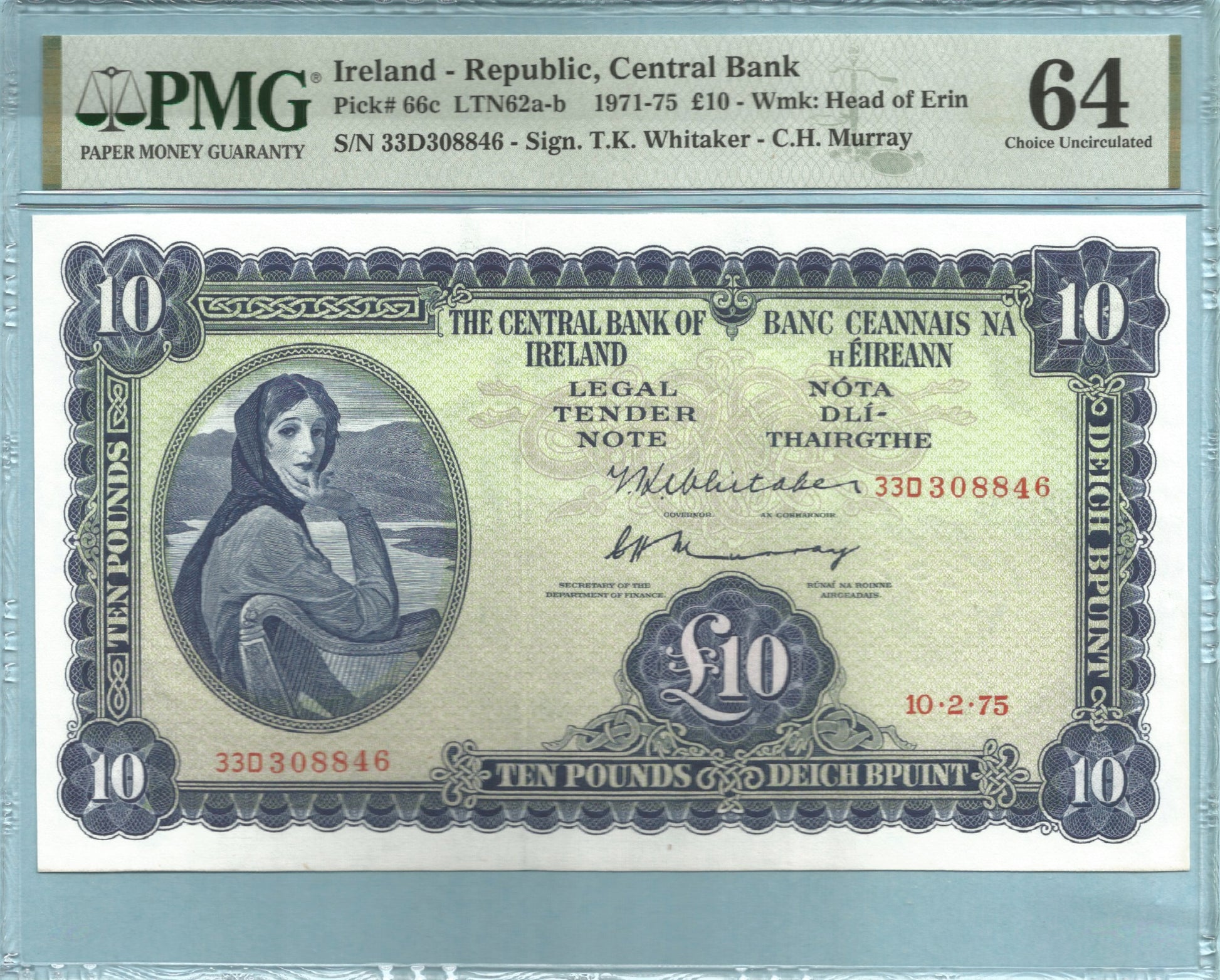 Ireland 10 Pounds 10.2.1975 P#66c - PMG 64