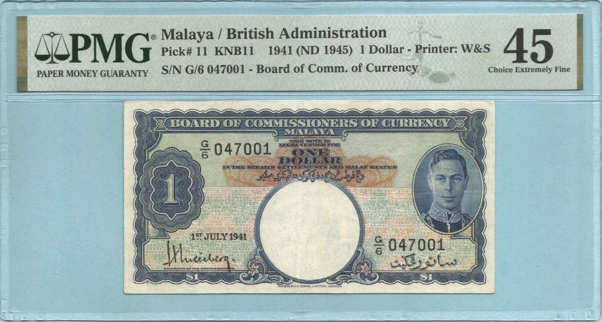 Malaya Dollar 1.7.1941 - P#11 - PMG 45