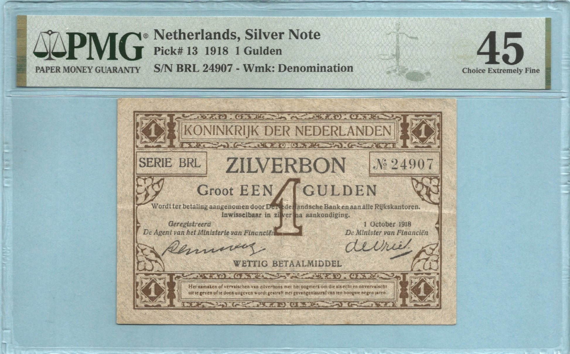Netherlands Gulden 1.10.1918 - P#13 - PMG 45