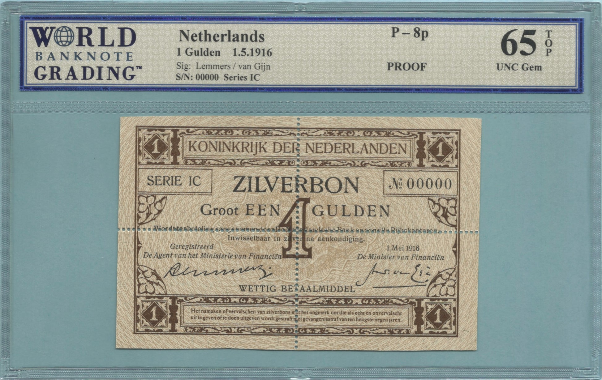 Netherlands Gulden 1.5.1916 - P#8p - PROOF - WBG 65 TOP