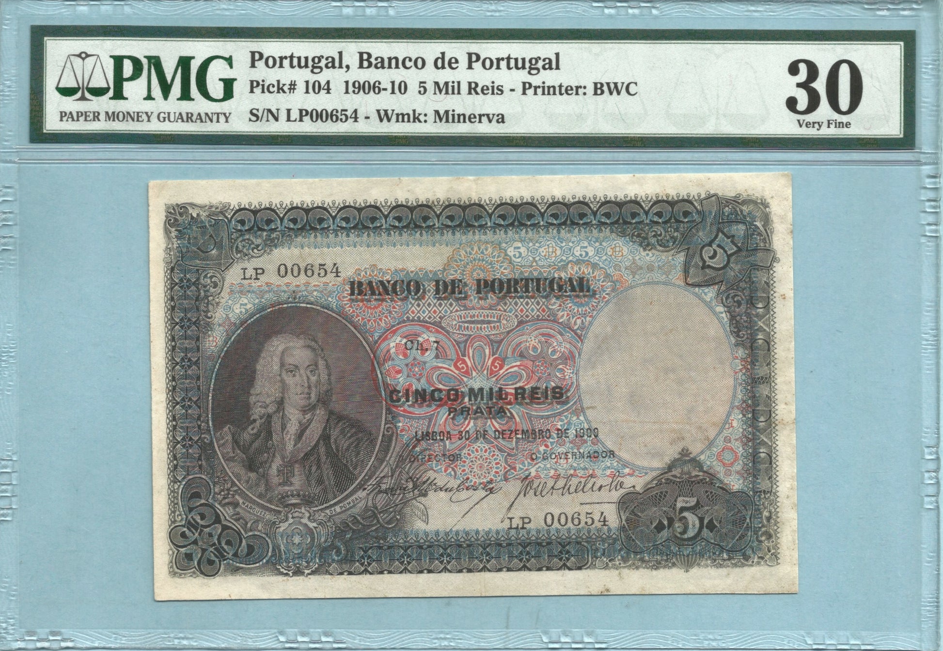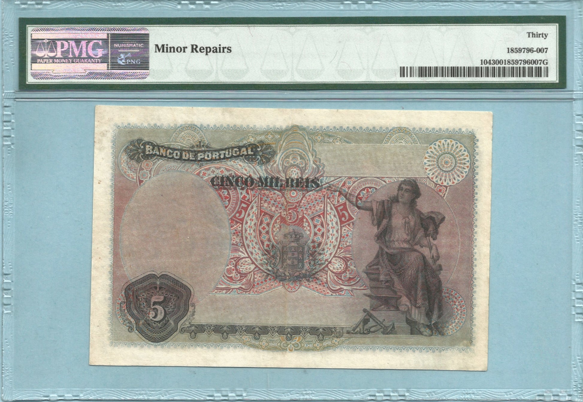 Portugal 5 Mil Reis - 30.12.1909 - P#104 - PMG 30 - Minor Repairs
