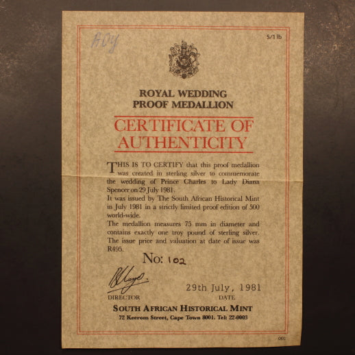 South Africa 1981 Charles-Diana Wedding Proof Medal 1 Troy Pound (12oz) Sterling