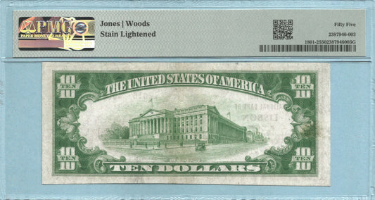 $10 National Currency 1929-T2 - Ch#12018 - 1st NB, Lisbon, NY - PMG 55